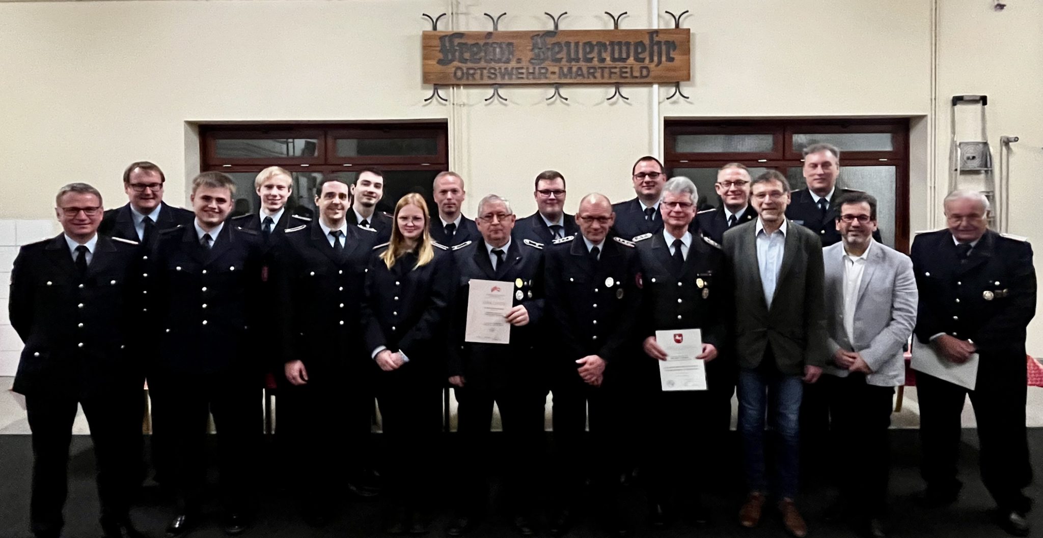 Die Grußworte richteten Ulf Schmidt (stellv. Samtgemeindebürgermeister), Michael Albers (Bürgermeister der Gemeinde Martfeld), Jörg Wichelmann (stellv. Gemeindebrandmeister) und Hartmut Specht (stellv. Kreisbrandmeister und Abschnittsleiter Nord) an die Versammlung.