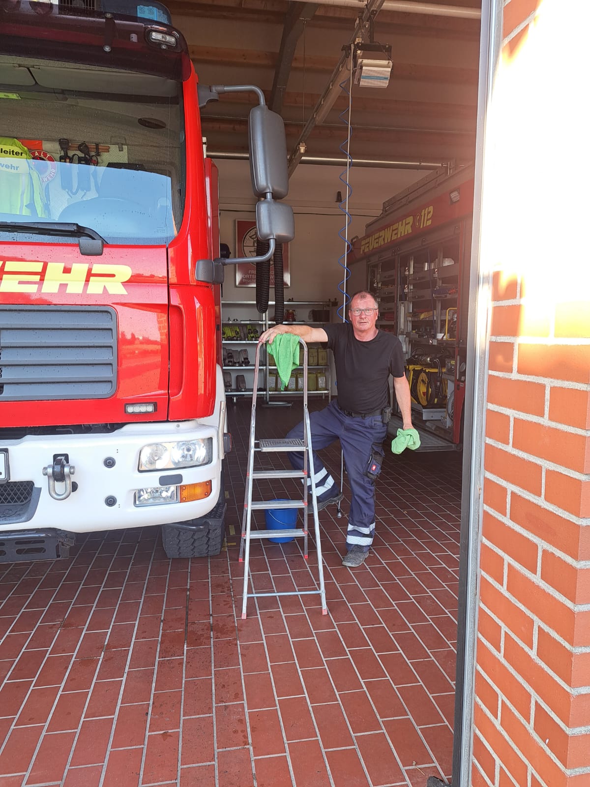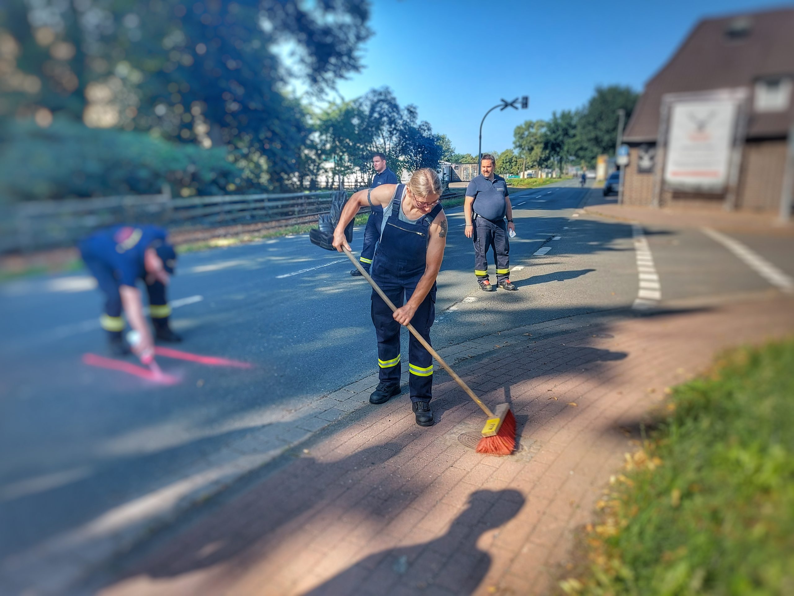- Feuerwehrdienst am Sonntag vor dem Markt. Die Gruppe beging das Gelände und erledigte einige Aufgaben.