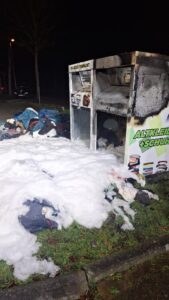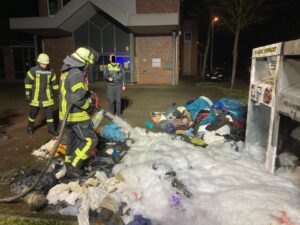 Bruchhausen-Vilsen: Am Samstagabend sind an der Bassumer Straße zwei Altpapiercontainer vollständig ausgebrannt. Beim Eintreffen der Ortsfeuerwehr gegen 19 Uhr standen die Container bereits in Vollbrand. Die Einsatzkräfte löschten das Feuer zügig und öffneten anschließend beide Container, um verbliebene Glutnester im Inneren abzulöschen. Dabei bewährte sich erneut die neu angeschaffte Schaumpistole: Mit ihr konnte schnell, effektiv und ohne großen Aufwand ein gezielter Schaumangriff durchgeführt werden.