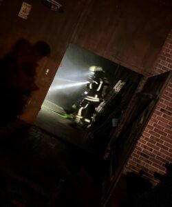 Schnell wurde eine sogenannte Riegelstellung aufgebaut. „Damit schützen wir benachbarte Gebäude vor einem Übergreifen der Flammen.“, erklärte True im Nachhinein. Auch die Menschenrettung stand im Mittelpunkt der Aufgaben.
