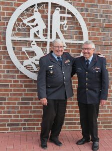 - Der ehemaliger Vorsitzende „Hannes“ Ullmann (links) und sein Nachfolger „Ecki“ bei dem Kameradschaftsausschuss des Kreisfeuerwehrverbandes Landkreis Diepholz e.V.