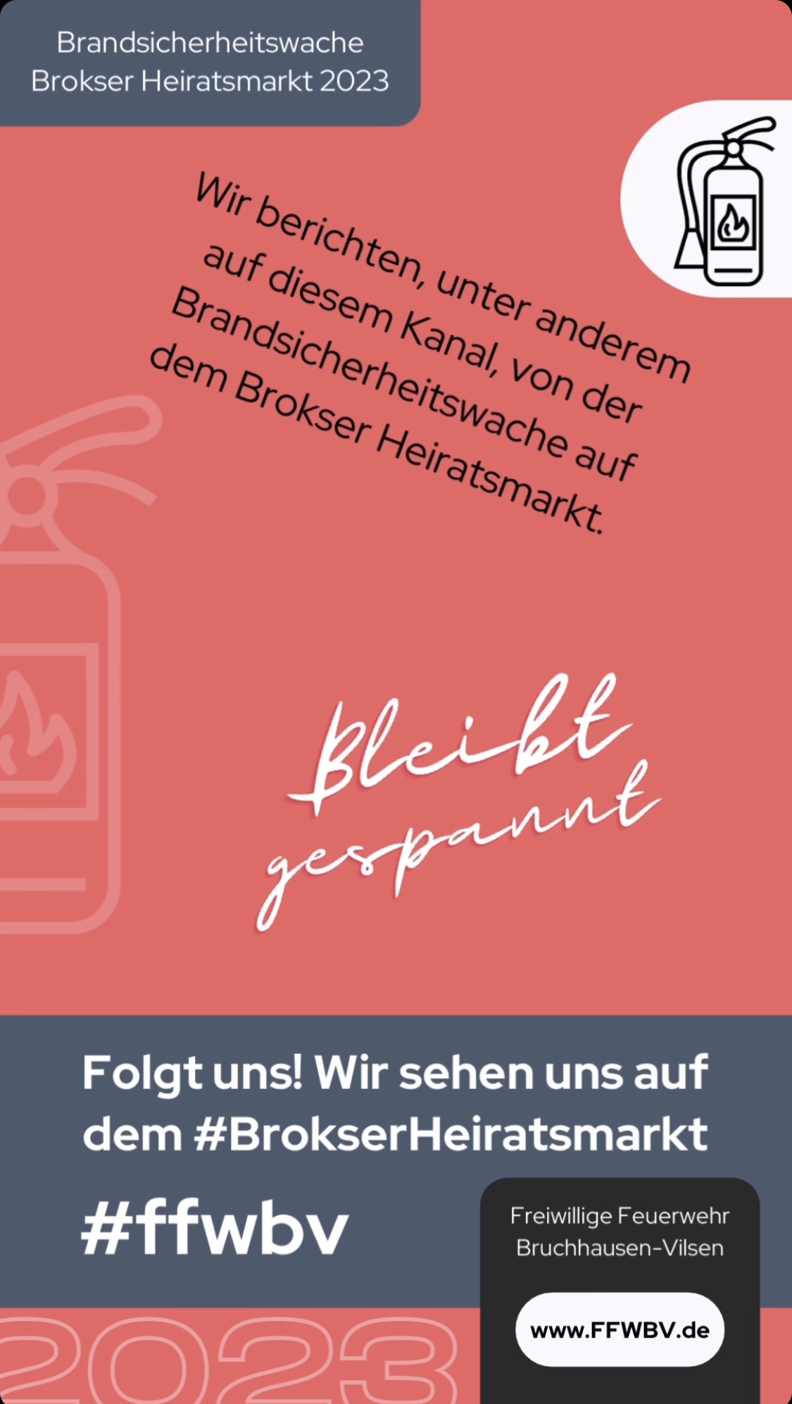 In diesem Jahr findet der Brokser Heiratsmarkt vom 25. – 29. August statt. Die Ortsfeuerwehr Bruchhausen-Vilsen hat auch dieses Jahr die Brandsicherheitswache übernommen. Schon lange im Voraus beginnen die Planungen für Ortsbrandmeister Andreas Steen und sein Team. „Gemeinsam mit einem meinem Stellvertreter, Frank Zschoche-Wolff, wird zum Beispiel ein Dienstplan erstellt, an Sitzungen teilgenommen oder vieles mehr geplant.“, erklärt Steen kurz nach seiner Amtsübernahme, „Während des Feuerwerks unterstützt zudem die Ortsfeuerwehr Engeln mit einer Sonderwache.“