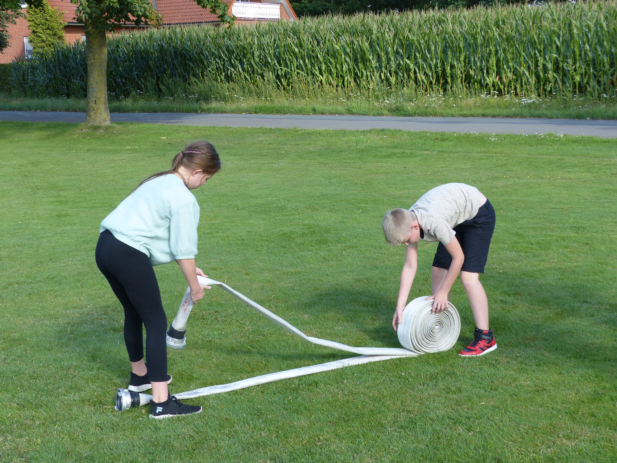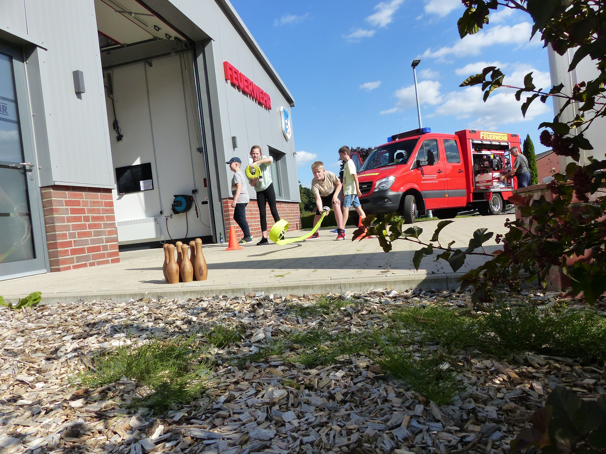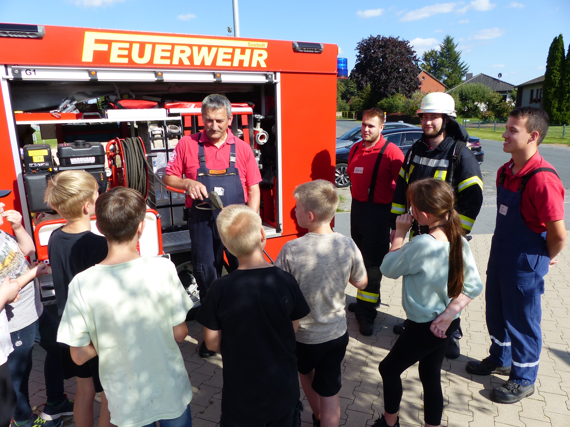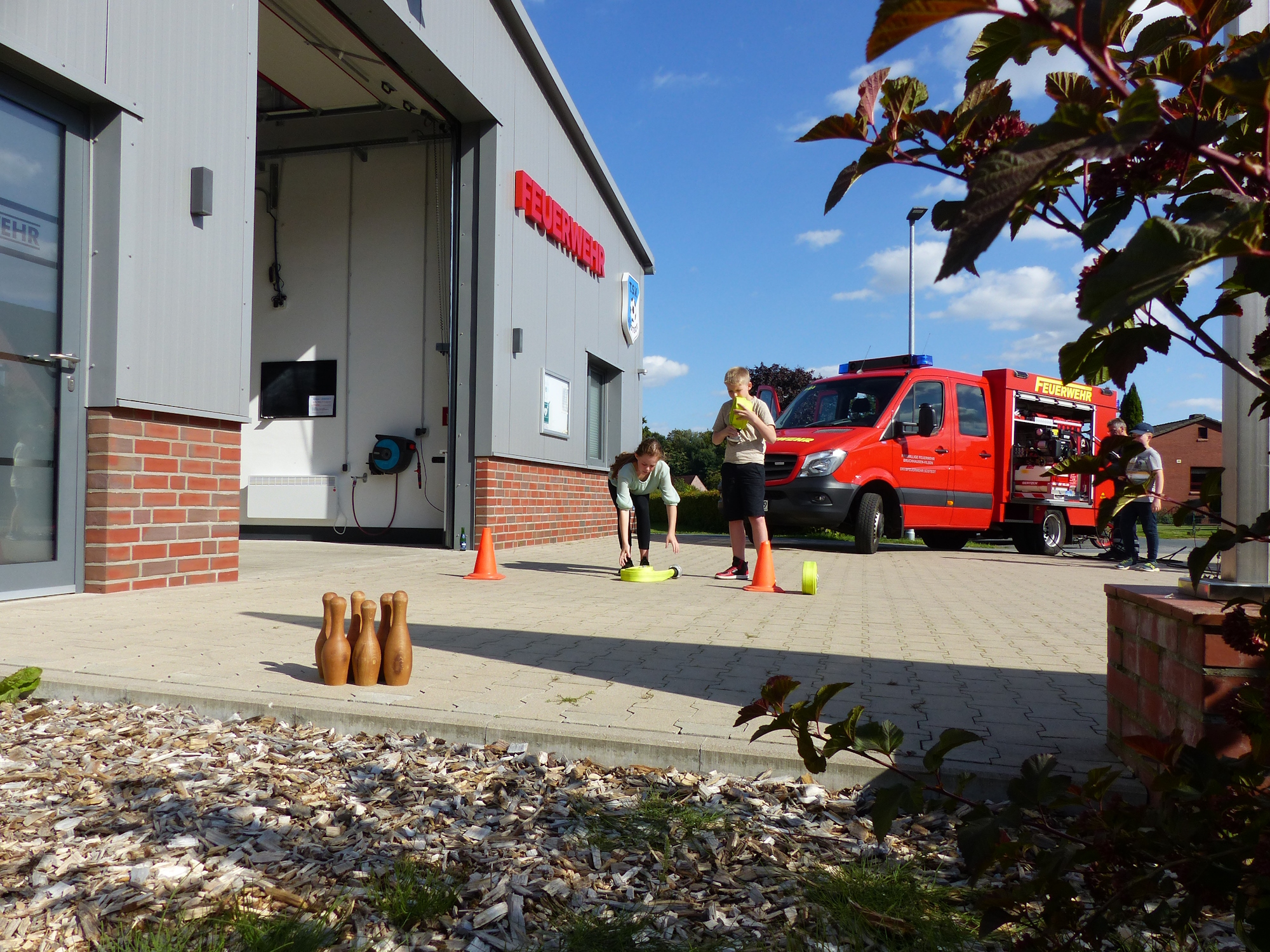 - Feuerwehrdienst am Sonntag vor dem Markt. Die Gruppe beging das Gelände und erledigte einige Aufgaben.