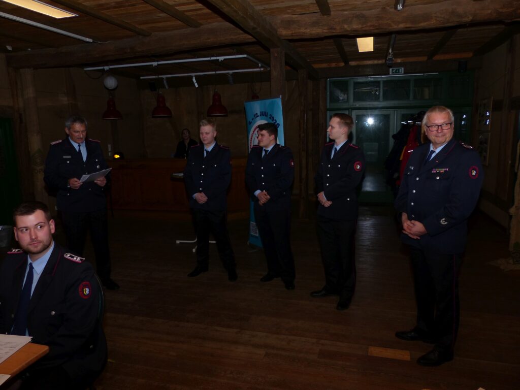 Aufgrund ihrer abgeschlossenen Lehrgänge und modularen Grundausbildung wurden die Feuerwehranwärter Emil Brümmer, Finn Staack und Justin Ernst zu Feuerwehrmännern ernannt, und werden somit fortan auch an realen Einsätzen teilnehmen.