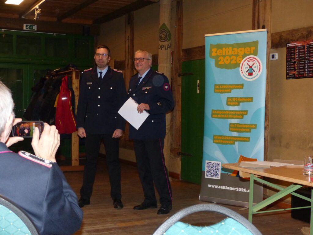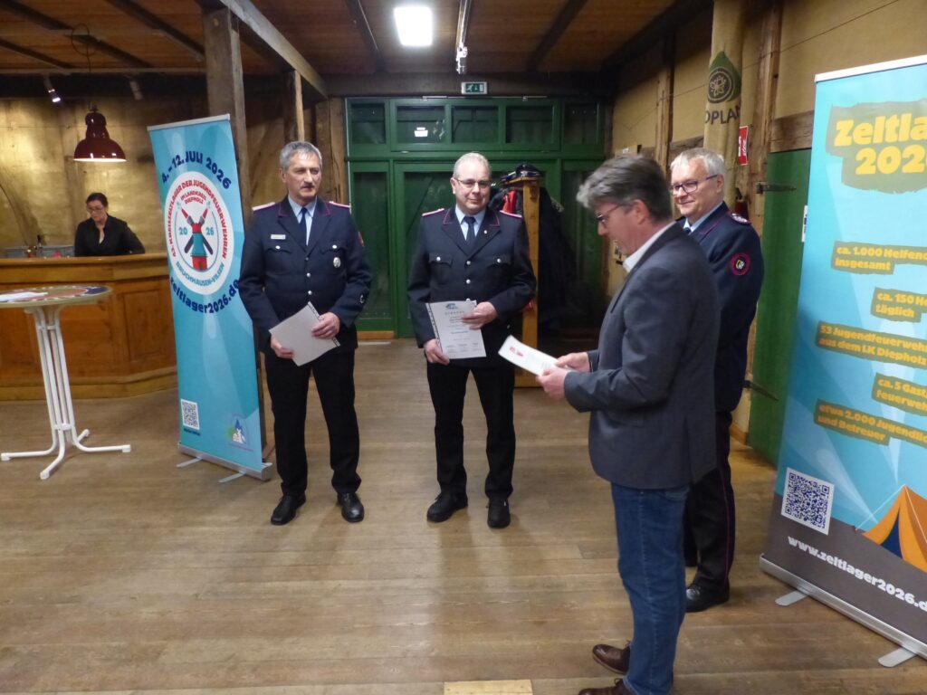 und Gemeindejugendfeuerwehrwart aller Jugendfeuerwehren der Gemeinde rührte neben dem Jahresbericht noch einmal die Werbetrommel und warb um Helfer für das Großevent im Juli. Man wird sich im Nachhinein ärgern, wenn man nicht dabei war und sich eingebracht hat, schmunzelte er. Wir können jede helfende Hand, egal ob von der Feuerwehr oder der Bevölkerung, dabei gebrauchen und es ist sicher für jeden ein Job dabei der ihm Spaß macht. (weitere Infos unter www.zeltlager2026.de)